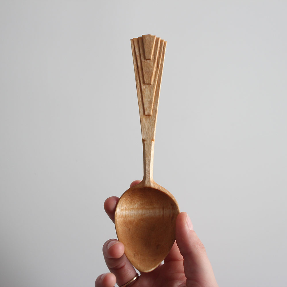 This wooden spoon is hand carved from white birch and left with a crisp, tooled finish that will grow ever more beautiful with age.