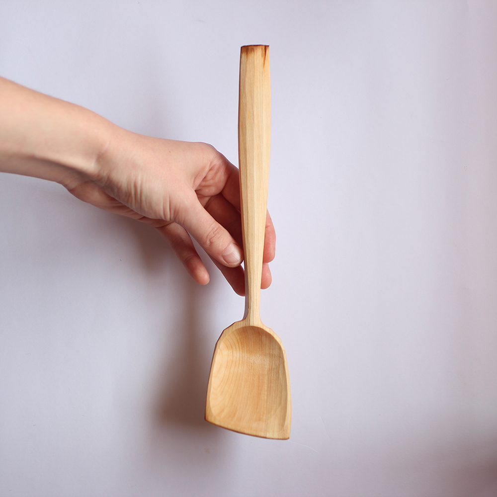 My cooking spoons are hand carved to perfectly balance form and function. A lifetime of experience has gone into ensuring they perform to their peak potential. Every single curve and line is paid special attention. They are finished with a razor-sharp knife, ensuring crisp smooth surfaces that will grow ever more beautiful with age.