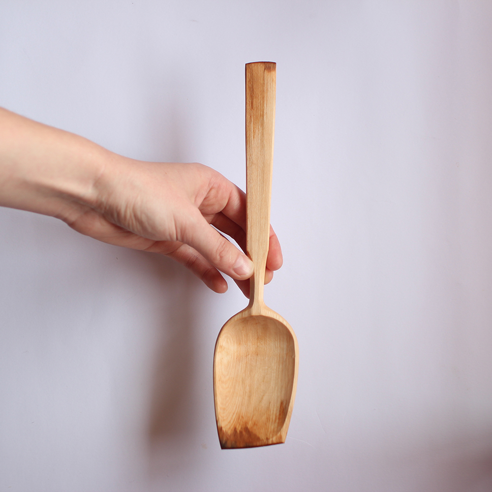 My cooking spoons are hand carved to perfectly balance form and function. A lifetime of experience has gone into ensuring they perform to their peak potential. Every single curve and line is paid special attention. They are finished with a razor-sharp knife, ensuring crisp smooth surfaces that will grow ever more beautiful with age.