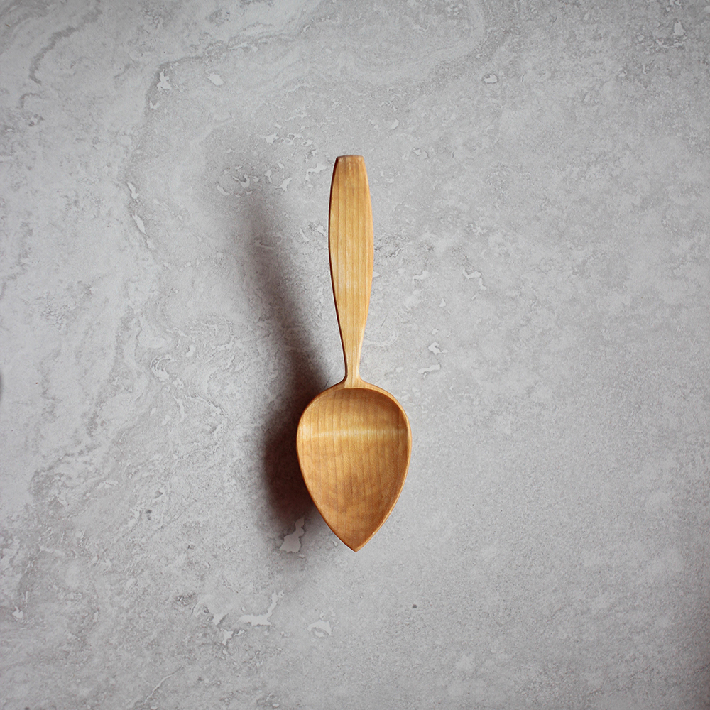 My eating spoons are hand carved to perfectly balance form and function. A lifetime of experience has gone into ensuring they perform to their peak potential. Every single curve and line is paid special attention. They are finished with a razor-sharp knife, ensuring crisp smooth surfaces that will grow ever more beautiful with age.