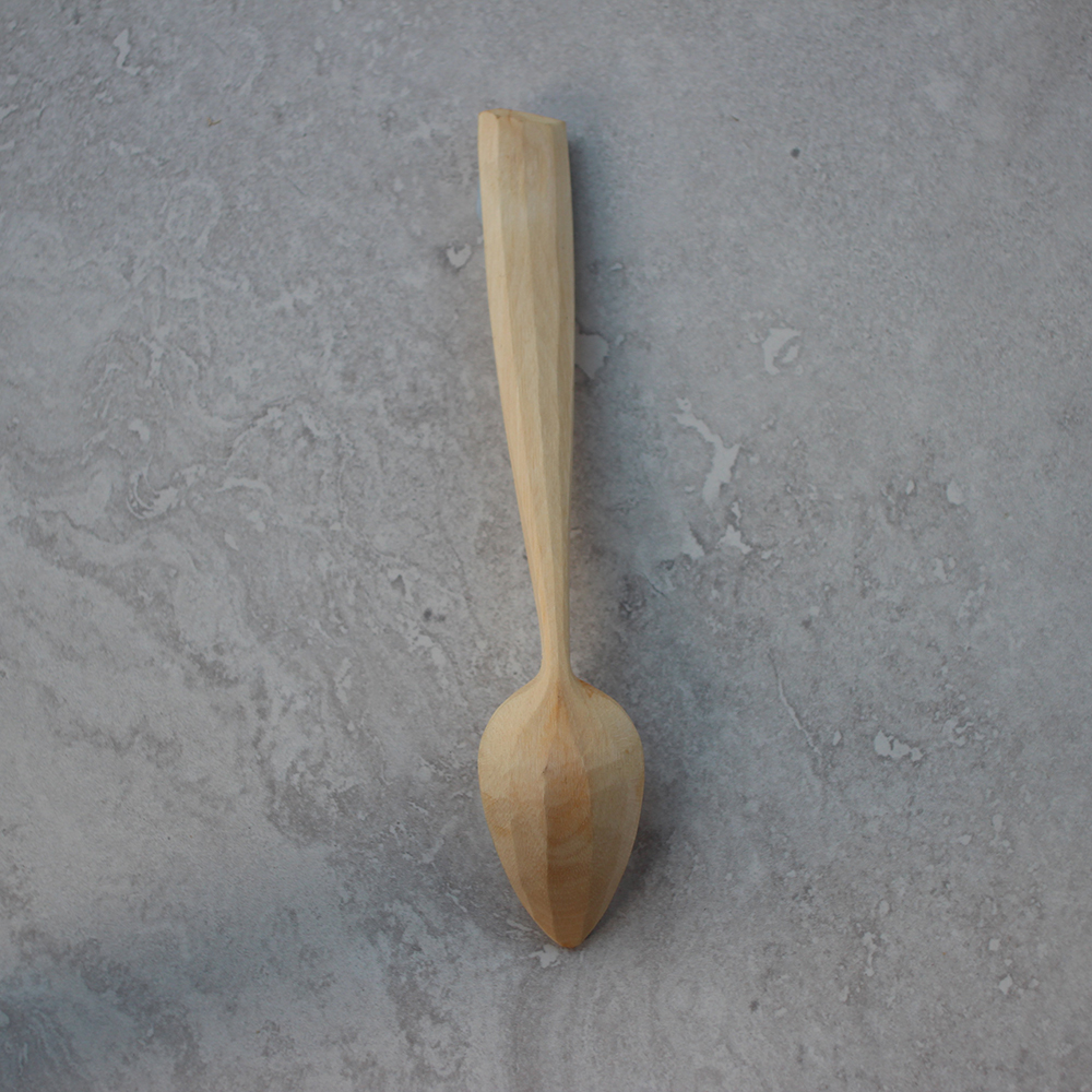 A long handled, delicate little serving spoon. Smooth facets and gentle curves. Small and perfectly formed. A unique, numbered piece.