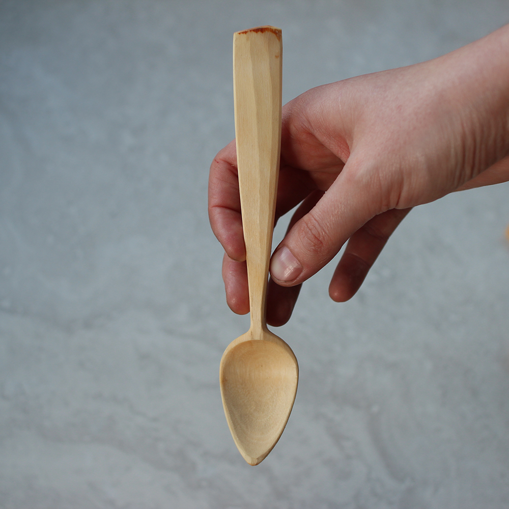 Hand carved from locally sourced laurel wood and treated with raw linseed oil.