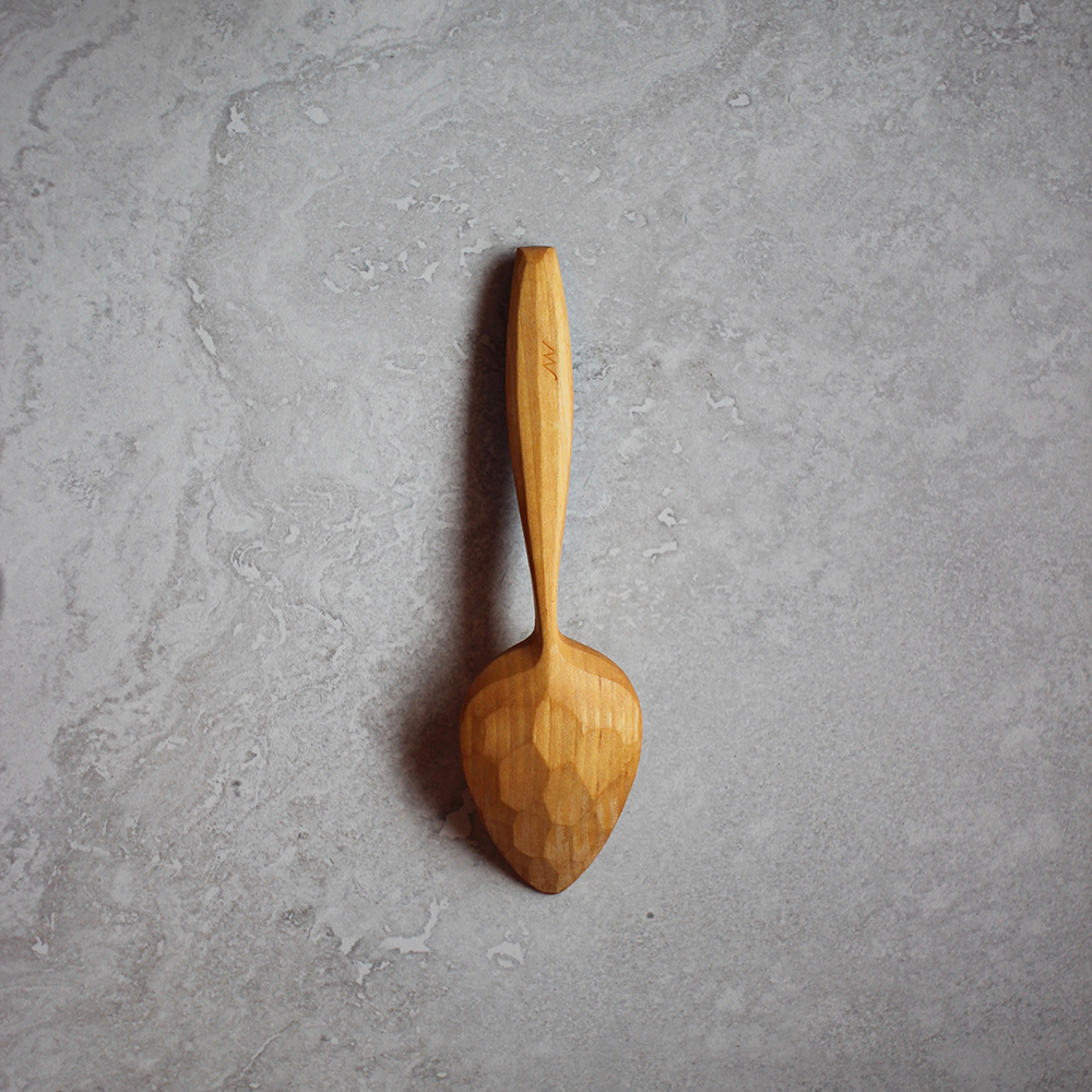 My eating spoons are hand carved to perfectly balance form and function. A lifetime of experience has gone into ensuring they perform to their peak potential. Every single curve and line is paid special attention. They are finished with a razor-sharp knife, ensuring crisp smooth surfaces that will grow ever more beautiful with age.