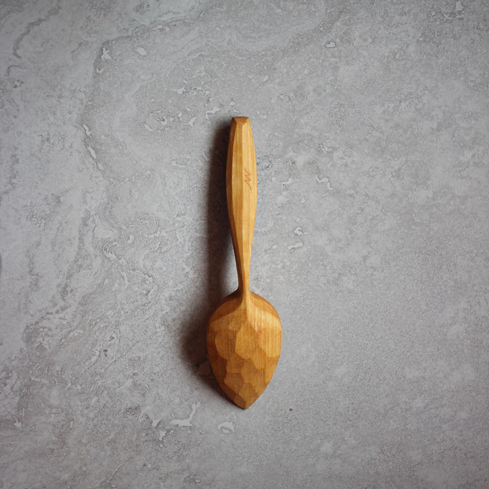 My eating spoons are hand carved to perfectly balance form and function. A lifetime of experience has gone into ensuring they perform to their peak potential. Every single curve and line is paid special attention. They are finished with a razor-sharp knife, ensuring crisp smooth surfaces that will grow ever more beautiful with age.